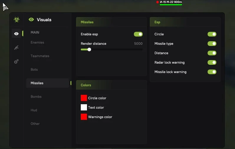 Отображение предупреждения если на вас летит самонаводящаяся ракета