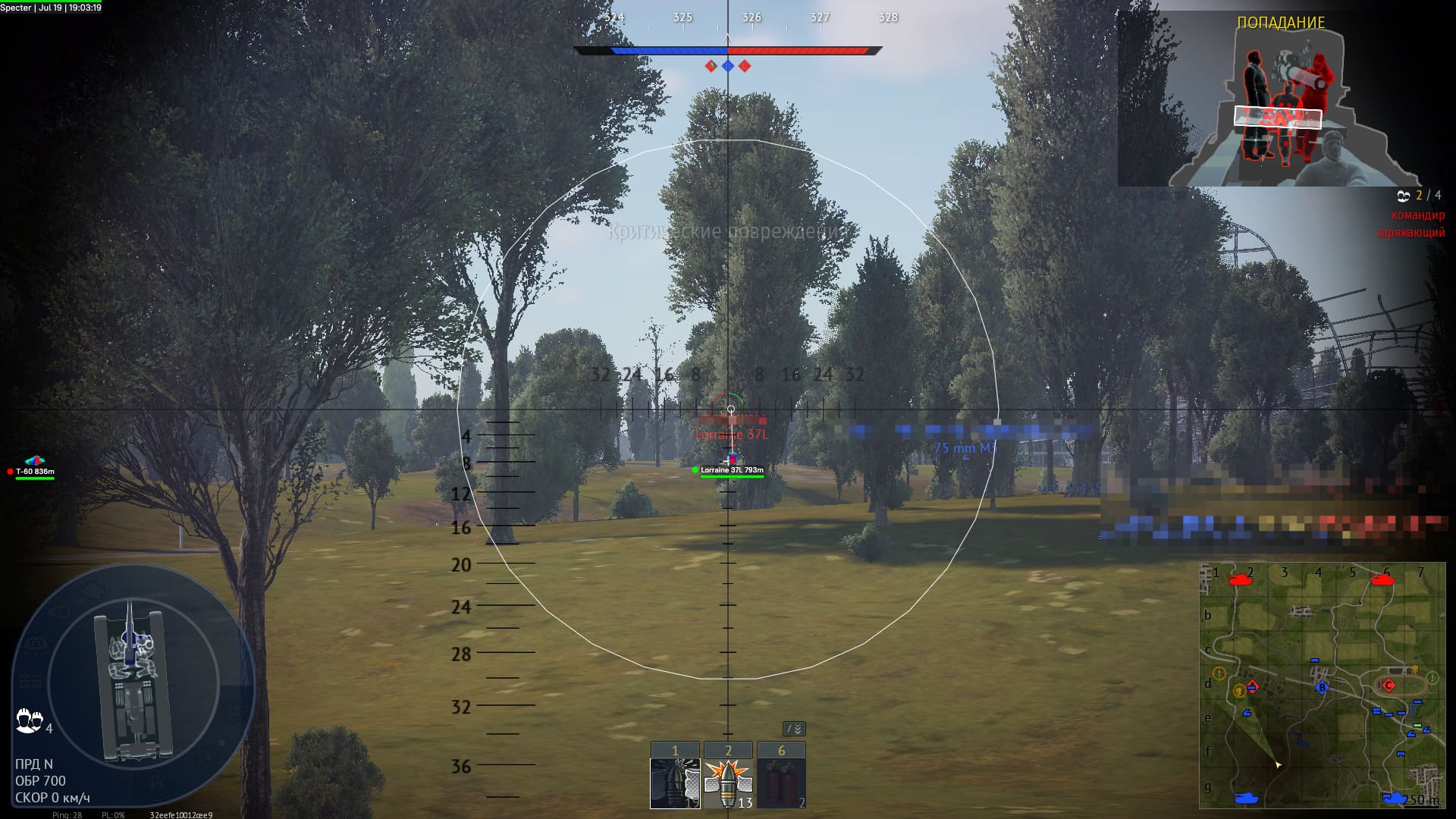 Отображение внутренностей танка
